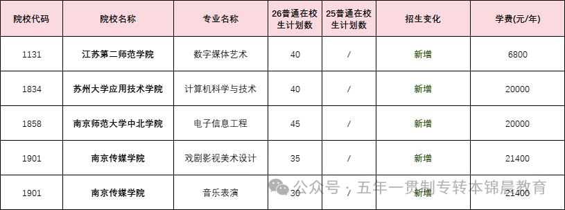 锦晨教育发布2026年五年一贯制高职“专转本”(非师范类)计划变化